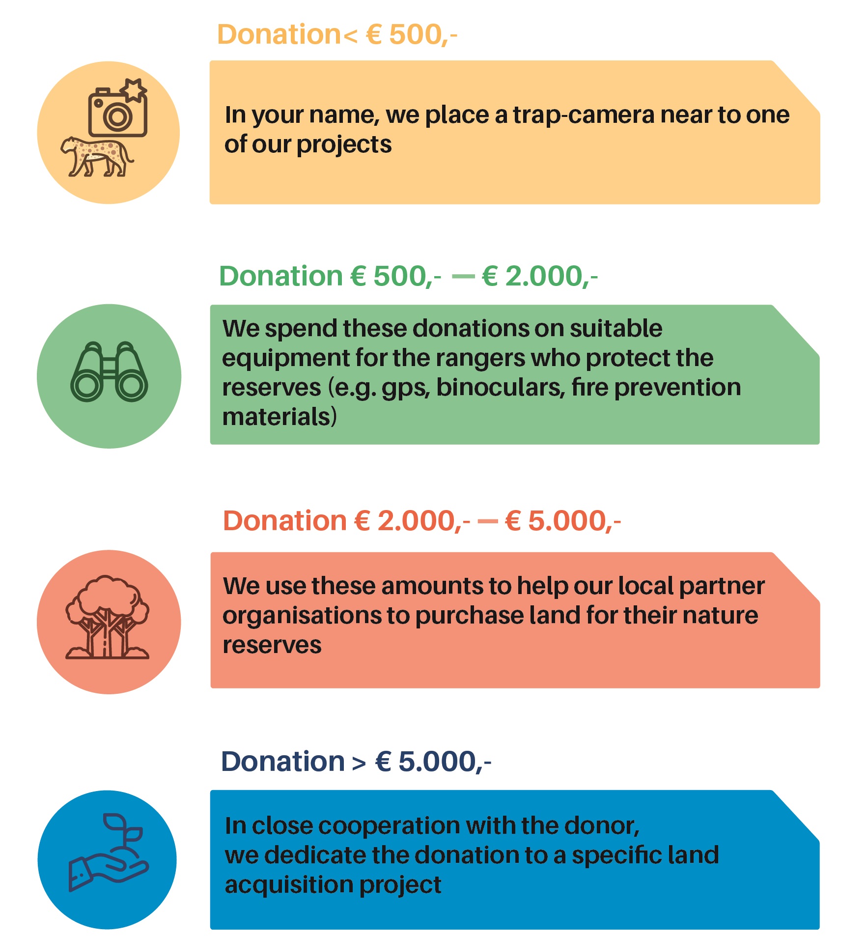 - You can fill in our donation form op Geef.nl (in Dutch){{{Of each donation made via Geef.nl, on average 98.5% goes to the Land Acquisition Fund. As a donor you can see exactly how much the charity receives and you can make a voluntary contribution to the platform, so that 100% of the donation goes to the charity and as the donor you also support the platform. This contribution is not obligatory. For more information (in Dutch): https://www.geef.nl/nl/page/volledige-transparantie-voor-de-donateur}}}.